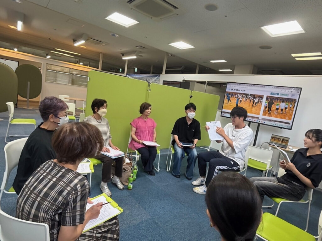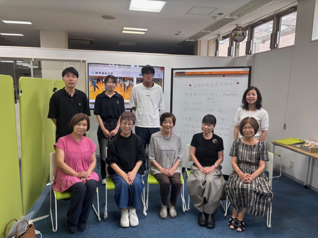 8月17日(日)、静岡福祉大学木戸ゼミとフォークダンスグループ「おのわ」のシニア5名による「多世代間交流による子育て支援」をテーマとした座談会が行われました。