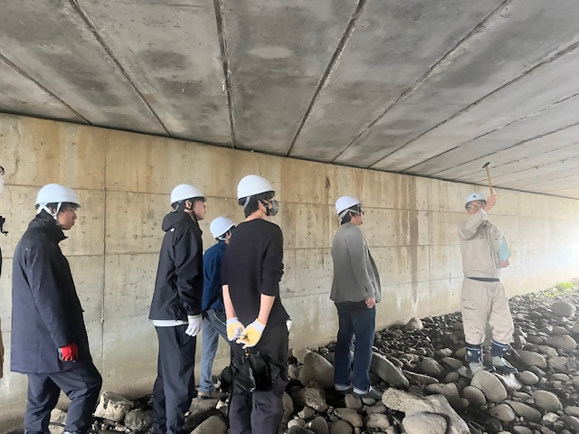 令和7年11月27日、埼玉大学経済学部宮崎研究室が、「橋梁における老朽化の要因とその対策」をテーマにフィールドワークを行いました。